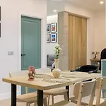 - ❓Is er een keuken beschikbaar in dit appartement voor gasten?Ja, dit appartement is uitgerust met een complete keuken en biedt ook een koelkast, een oven en keukengerei aan.